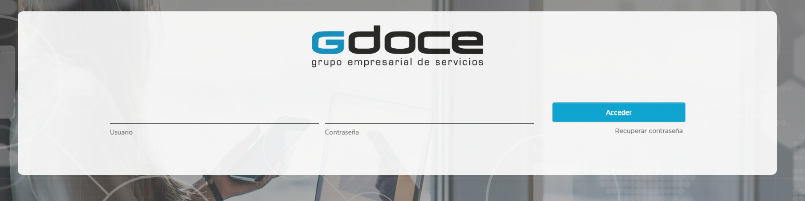 Lo primero que debe hacer es escribir en la barra de direcciones lo siguiente: http://gdoce.tucampusdeformacion.com/. A continuación, accederá a la plataforma, en la que debe incluir las claves (nombre de usuario y contraseña) que se te facilitaron a través del correo electrónico.